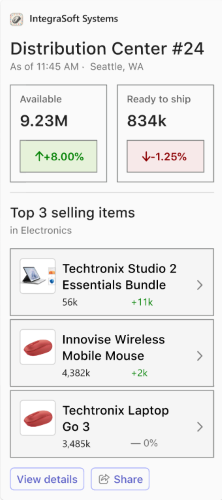 オブジェクトを使用して、アダプティブ カードの幅を拡張できます。 アダプティブ カード内で先行入力サポートを有効にし、ユーザーが入力を入力するときに入力選択肢のセットをフィルタリングできます。