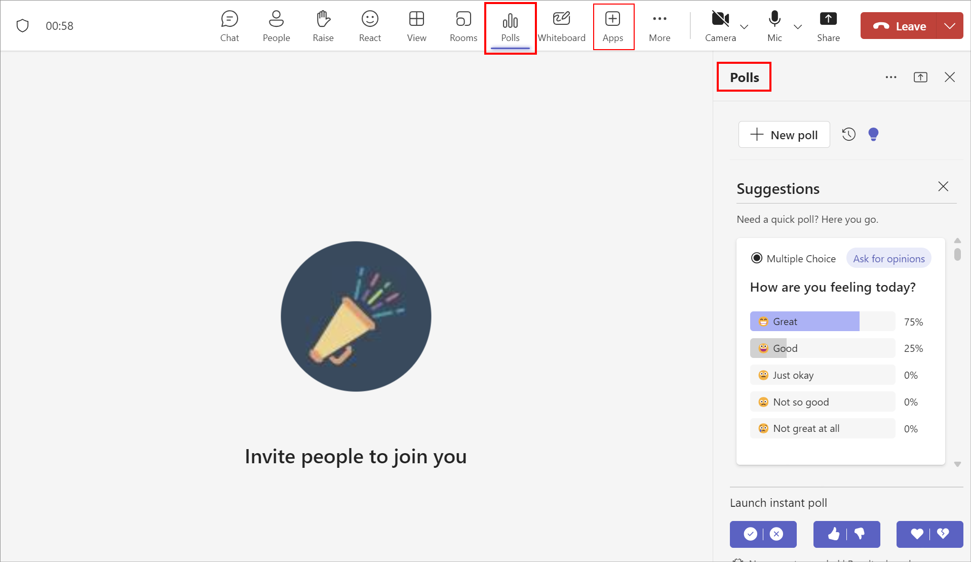 - 会議拡張機能: 会議の出席者は、会議を離れずに会議を表示し、アプリを使用してすばやく共同作業できます。 会議中のバーには 2 つのアプリのみが表示され、追加された場合は残りのアプリが [ その他 ] オプションの下に表示されます。