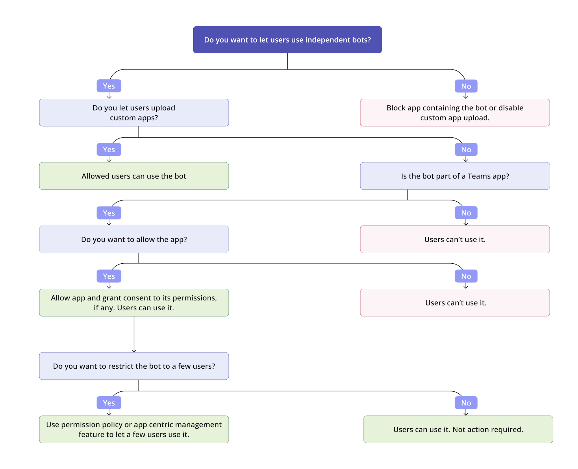 - Teams アプリの一部であるボットは、管理者がorganizationでアプリを許可している場合に機能します。