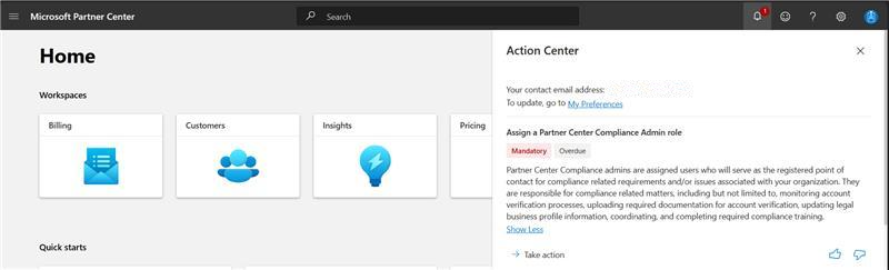 直接請求、間接プロバイダー、間接リセラーのパートナークラウド ソリューション プロバイダー、すべての Microsoft AI クラウド パートナー プログラム パートナーには、パートナー センター アカウントにコンプライアンス管理者が割り当てられている必要があります。