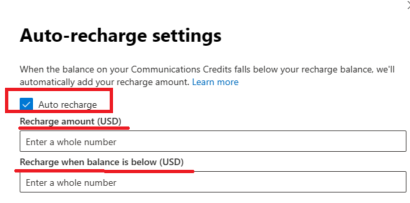 ほとんどのお客様は、アカウント内で "自動再充電" フラグを有効にしています。このフラグは、構成したしきい値レベルに通信クレジットの残高を自動的に補充します。 従量課金メーターを使用する場合は、このオプションを無効にする必要があります。 それ以外の場合、通信クレジット残高は無期限に補充され、コマース システムは後払いメカニズムに切り替わりません。