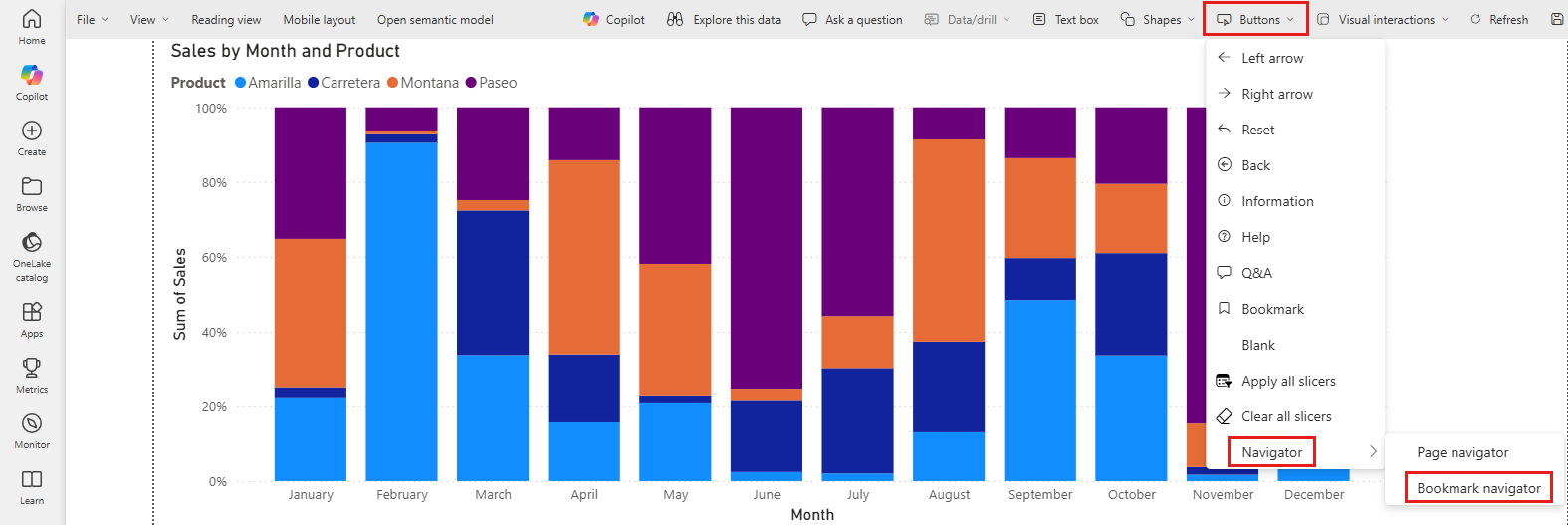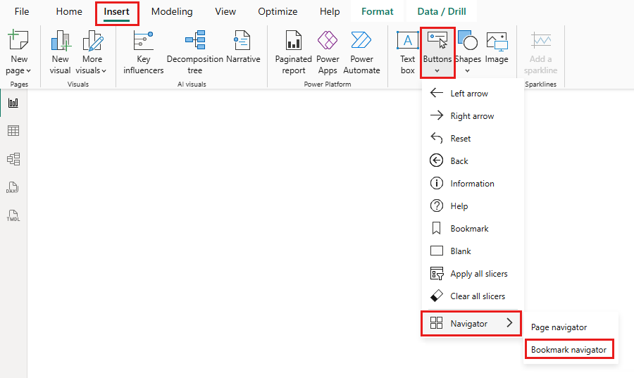 Power BI で組み込みのナビゲーターを使用すると、ページとブックマークのナビゲーション エクスペリエンスをいくつかの手順で作成できます。 これらのナビゲーターを使用すれば、ページまたはブックマークのナビゲーション エクスペリエンスを構築および管理するのにかかる作業時間が節約されます。