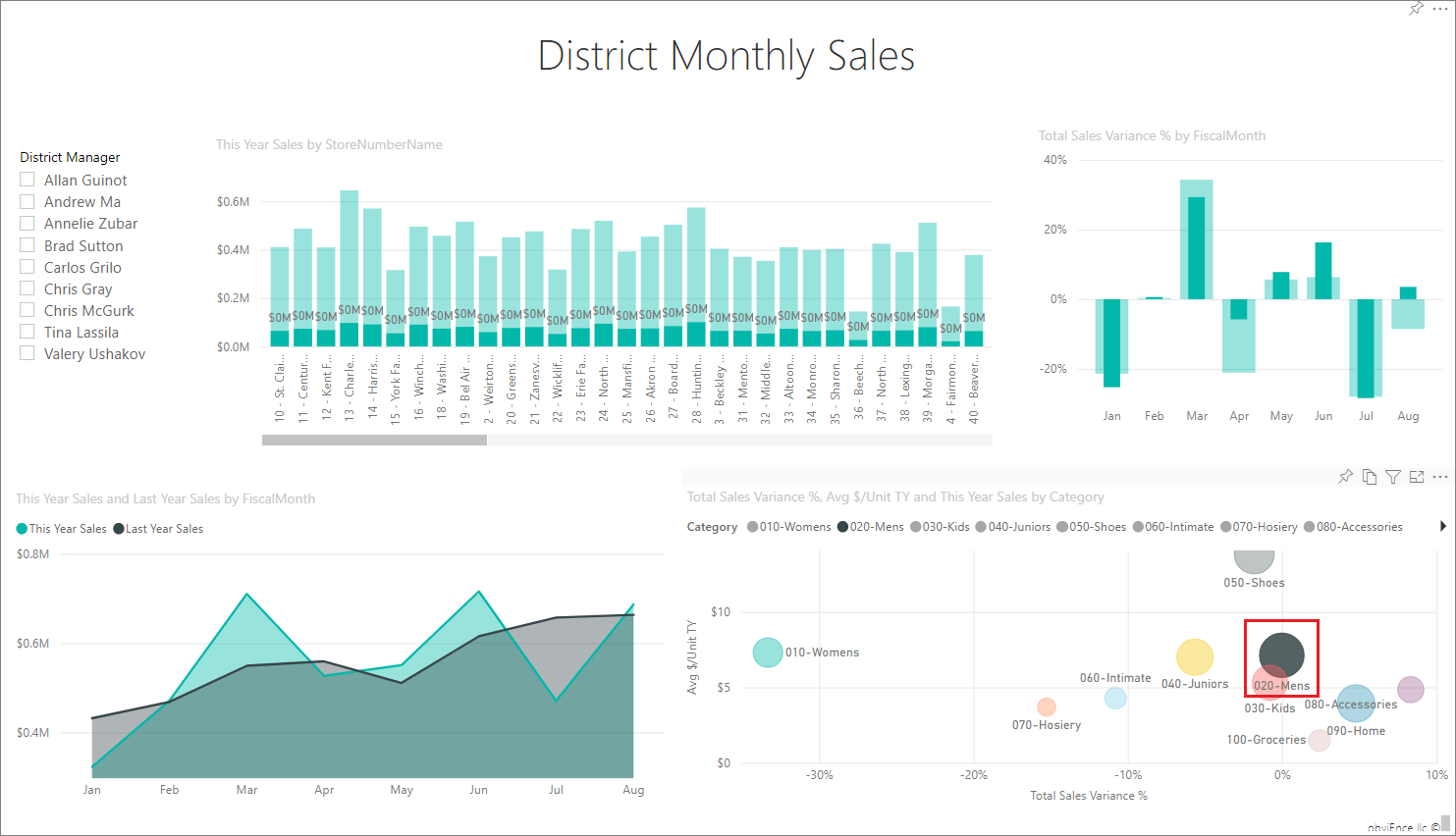 他の地区マネージャーとカテゴリを調べる。他にどのような分析情報を見つけることができますか?