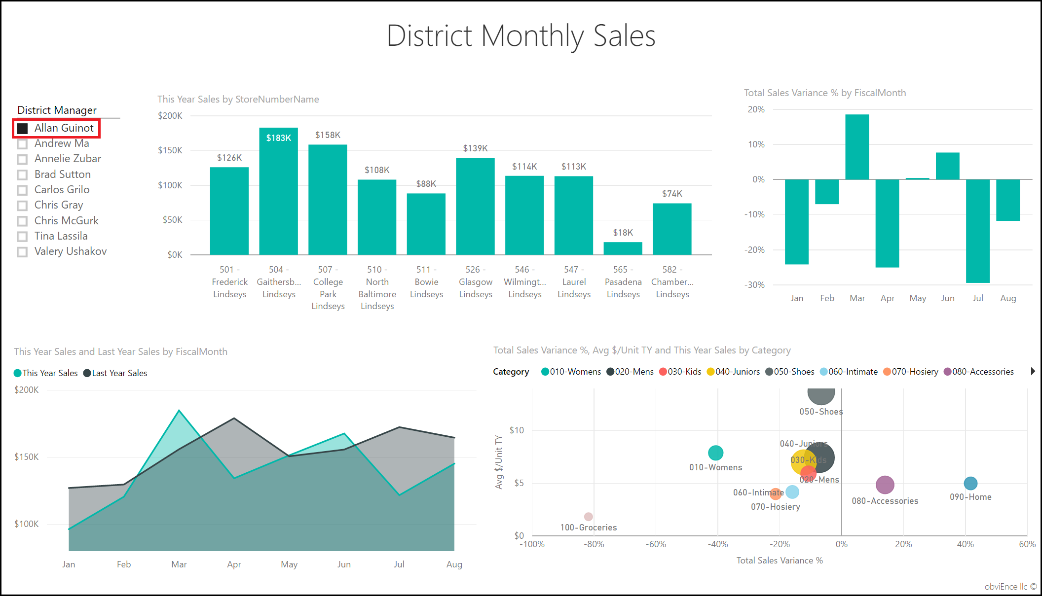 左上の District Manager スライサーで Allan Guinot を選択します。