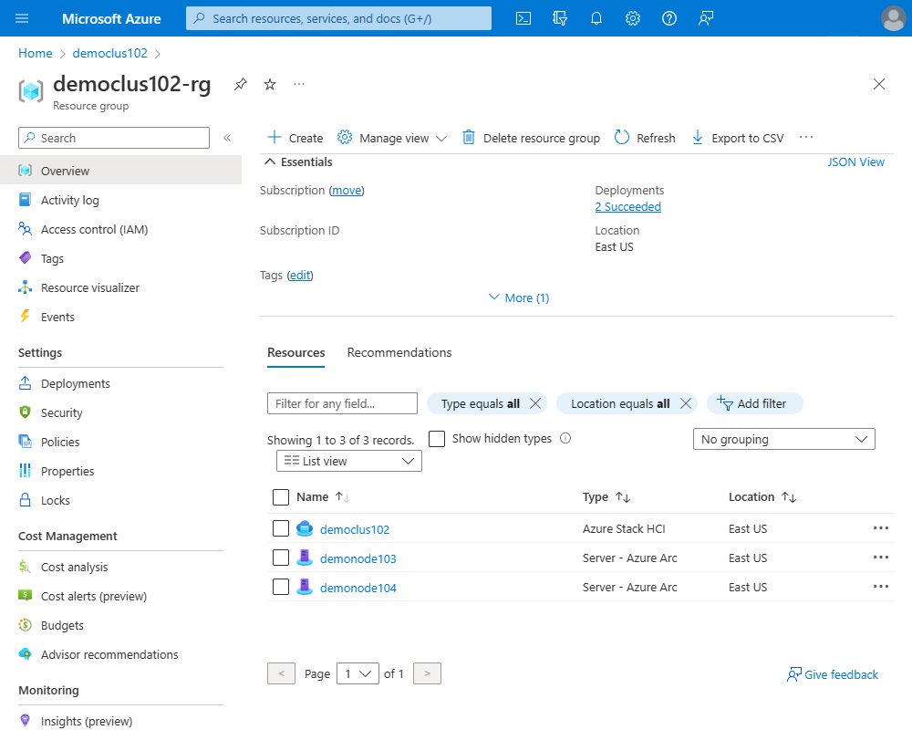 When you register your cluster with Azure, an Azure Resource Manager resource is created to represent the on-premises Azure Stack HCI cluster. Starting with Azure Stack HCI, version 21H2, registering a cluster automatically creates an Azure Arc of the server resource for each server in the Azure Stack HCI cluster. This Azure Arc integration extends the Azure management plane to Azure Stack HCI. The Azure Arc integration enables periodic syncing of information between the Azure resource and the on-premises clusters.