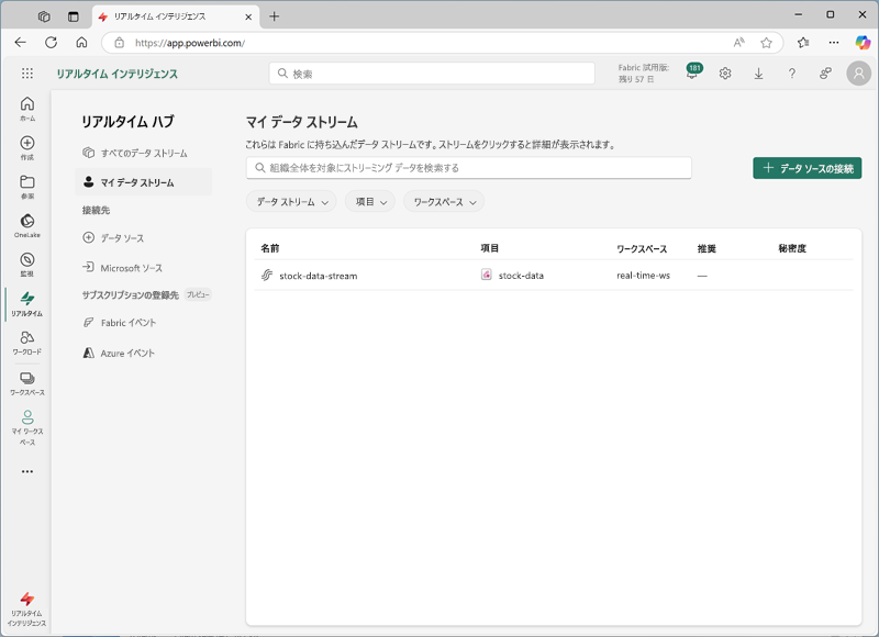 - データ ソース: Microsoft ソース、データベース変更データ キャプチャ フィード、他のクラウド プロバイダーからの外部ソースなど、使用可能なストリーミング データ ソースを参照して接続する