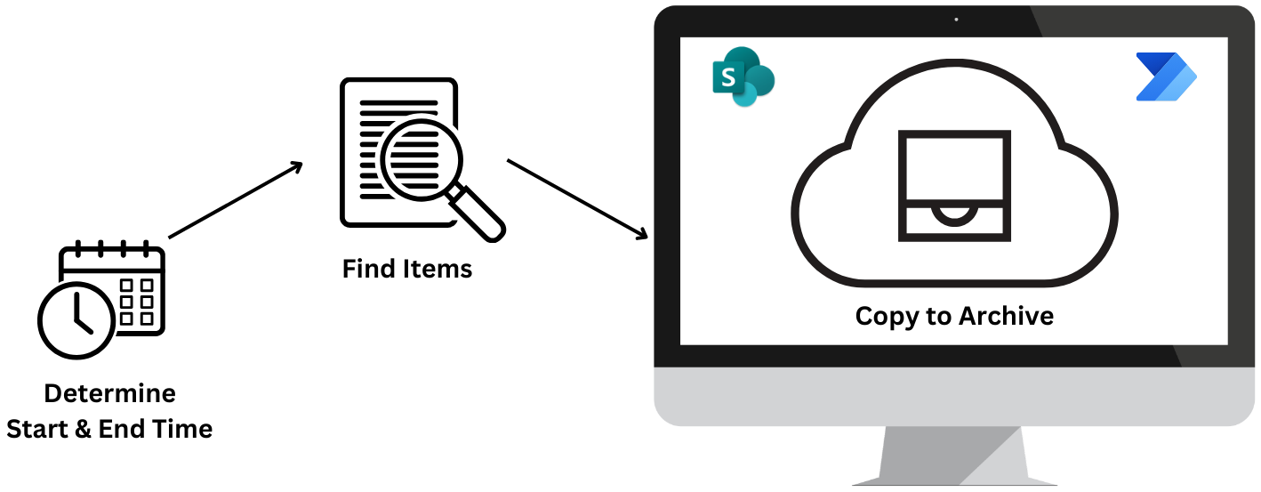 アクションを追加する前に、このフローの全体的な戦略を確認してください。 アーカイブ フローを使用すると、次の処理を実行できます。