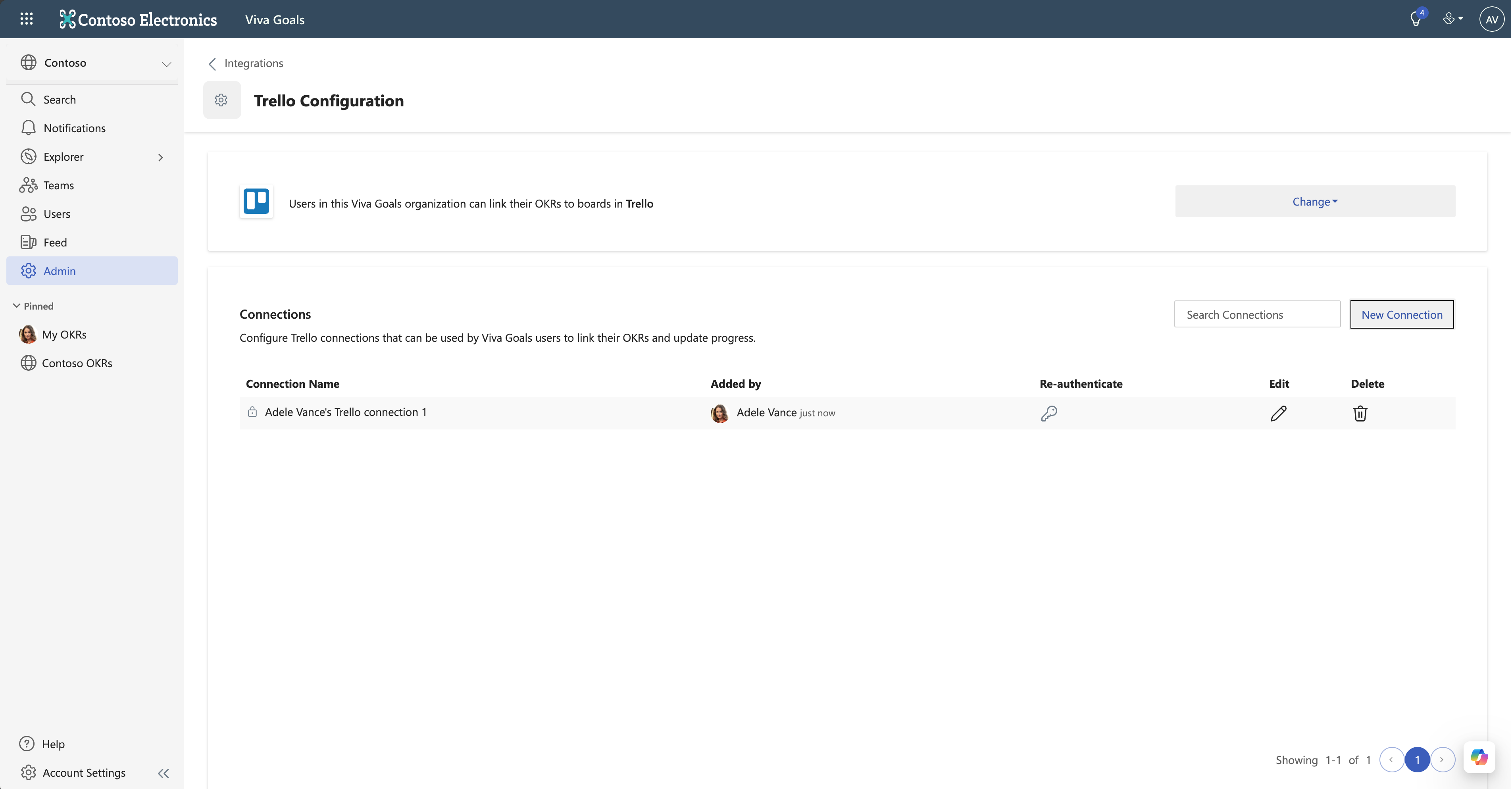 管理者の場合は、次の手順に従って、Viva Goalsで Trello 統合を設定します。