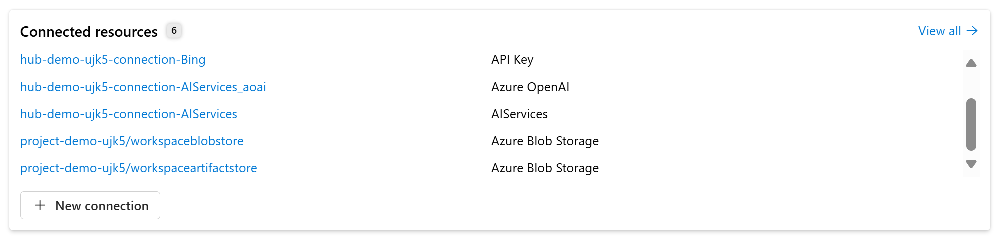 custom keys연결을 만듭니다.Microsoft Foundry 포털로 이동하여 AI 프로젝트를 선택합니다. 연결된 리소스를 선택합니다.
