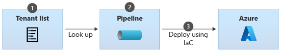 테넌트 목록을 데이터로 처리하는 경우에도 파이프라인을 사용하여 공유 구성 요소를 배포합니다. 그러나 각 테넌트에 대해 배포해야 하는 리소스 및 구성 설정의 경우 리소스를 명령적으로 배포하거나 구성합니다. 예를 들어 컨트롤 플레인은 Azure SDK를 사용하여 특정 리소스를 만들거나 매개 변수가 있는 템플릿의 배포를 시작할 수 있습니다.