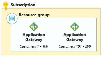 예를 들어 Azure 애플리케이션 게이트웨이를 다중 테넌트 SaaS 솔루션의 일부로 배포한다고 가정합니다. 애플리케이션 디자인을 검토하고, 부하 상태에서 애플리케이션 게이트웨이의 성능을 테스트하고, 해당 구성을 검토합니다. 그런 다음, 단일 애플리케이션 게이트웨이 리소스를 100명의 고객 간에 공유할 수 있다고 결정합니다. 조직의 확장 계획에 따라 첫 해에 150명의 고객을 온보딩한다고 예상되므로 예상 부하를 처리할 여러 애플리케이션 게이트웨이를 배포하도록 계획해야 합니다.