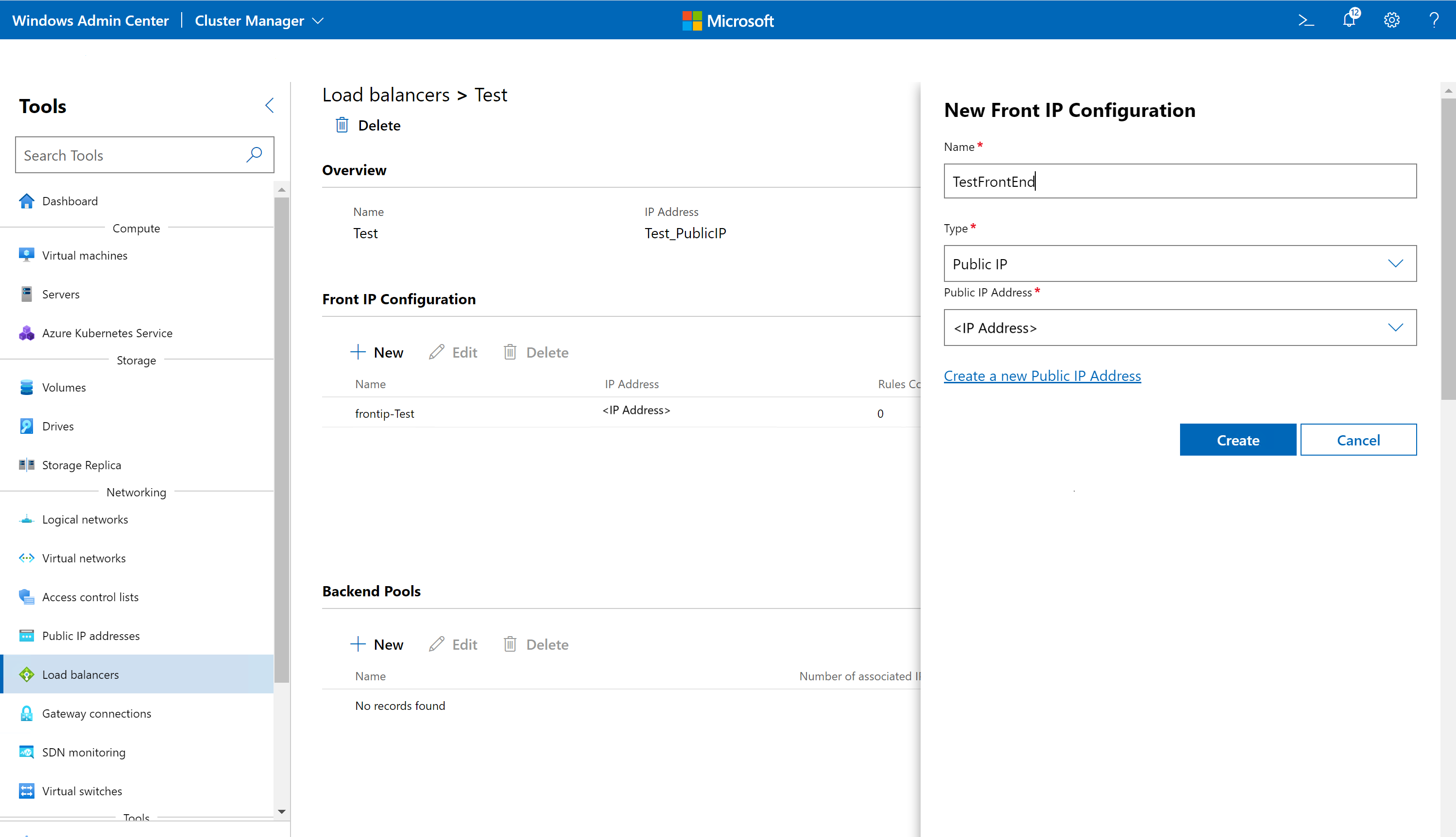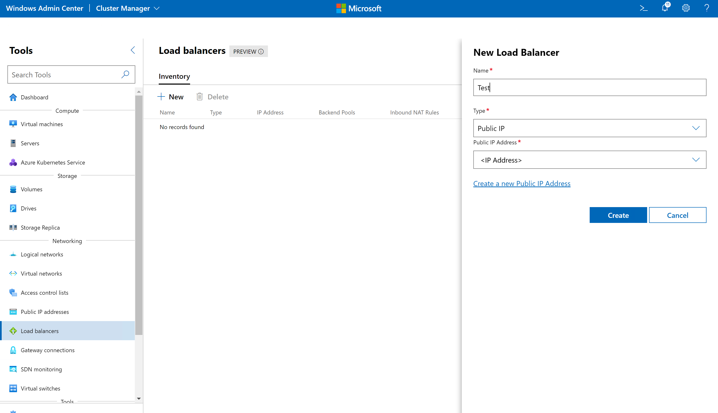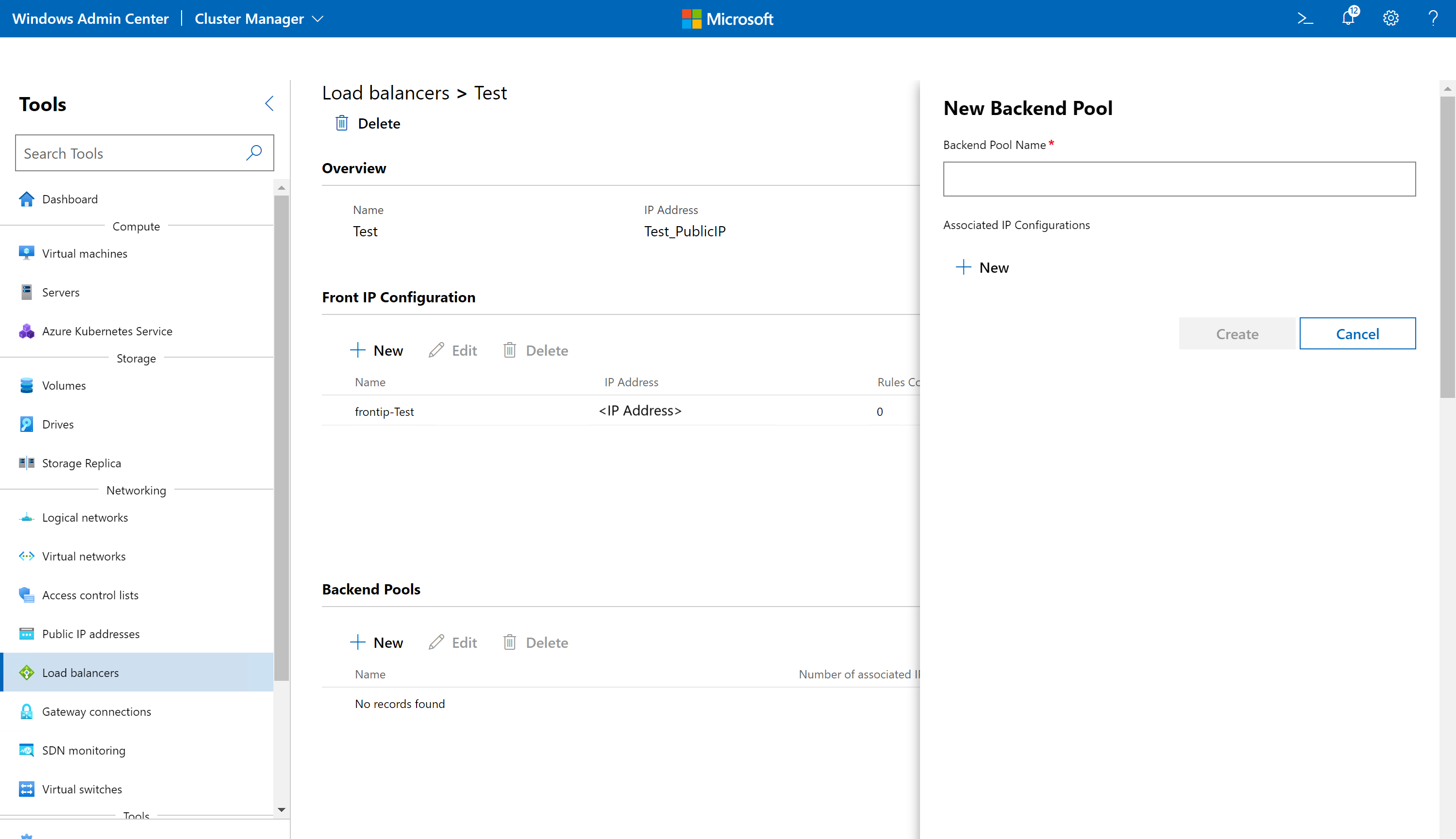 SLB를 만들려면 Windows Admin Center에서 다음 단계를 완료합니다.