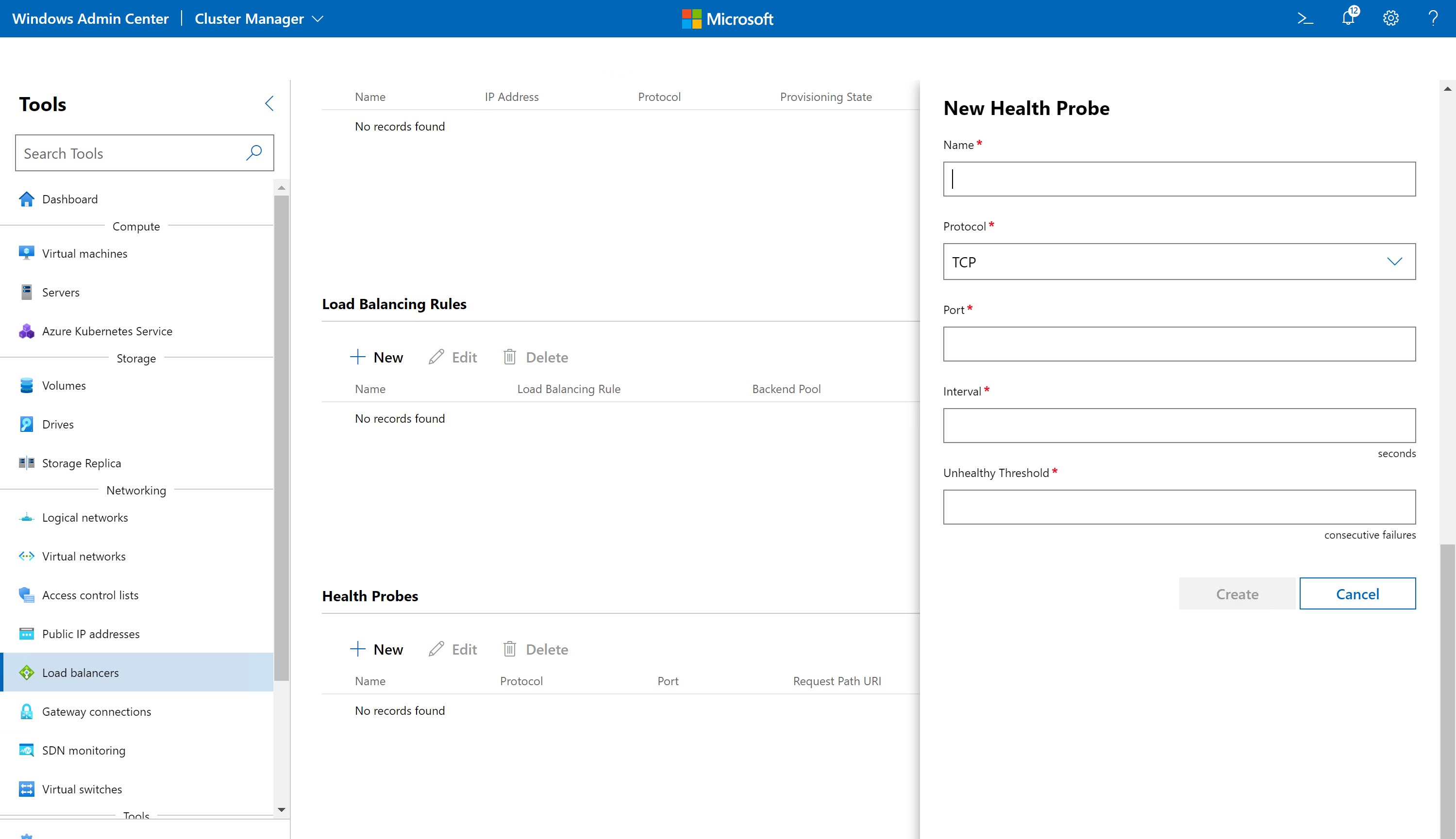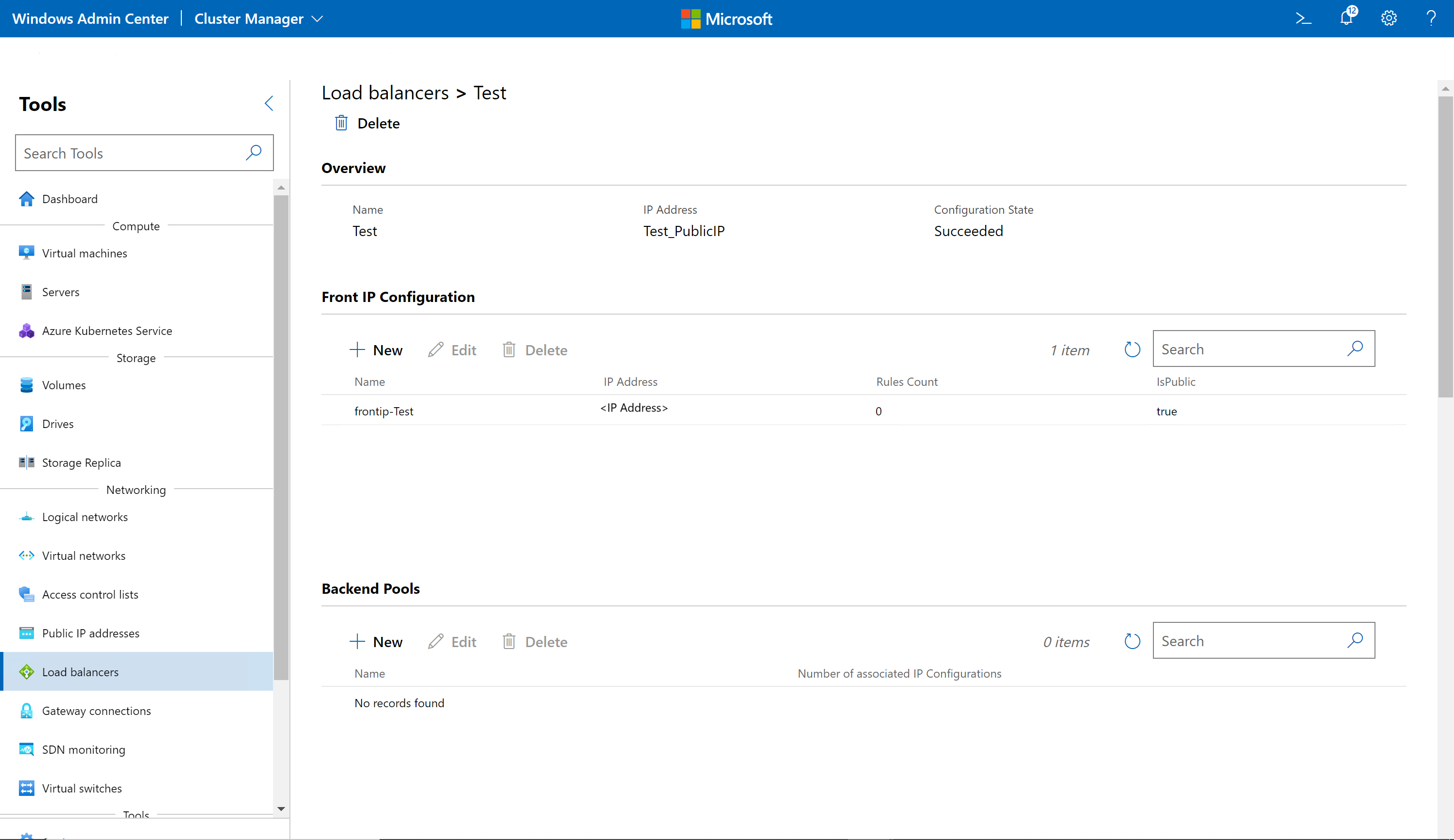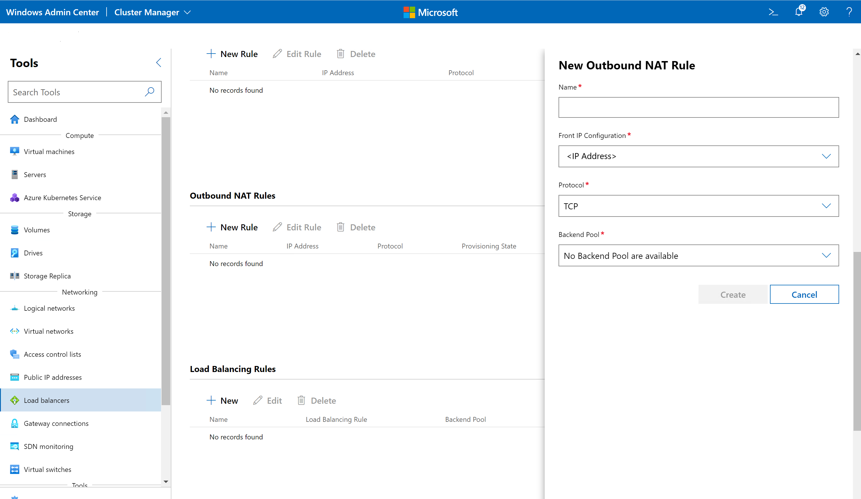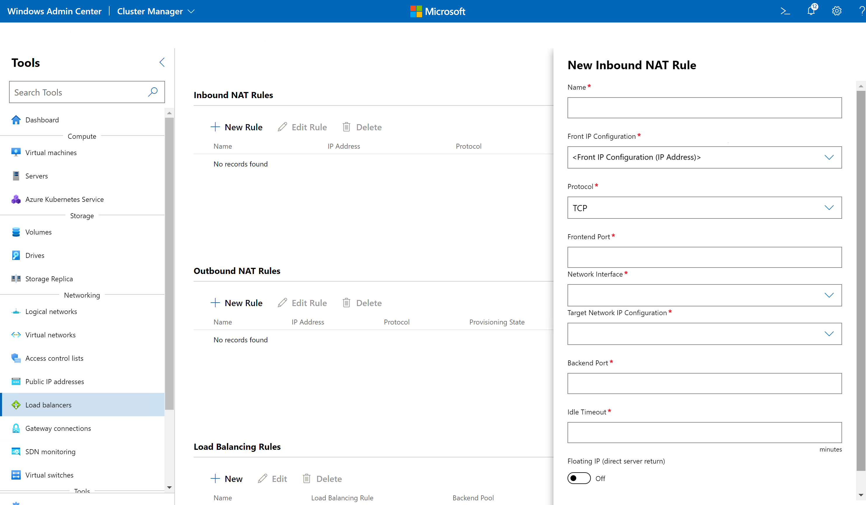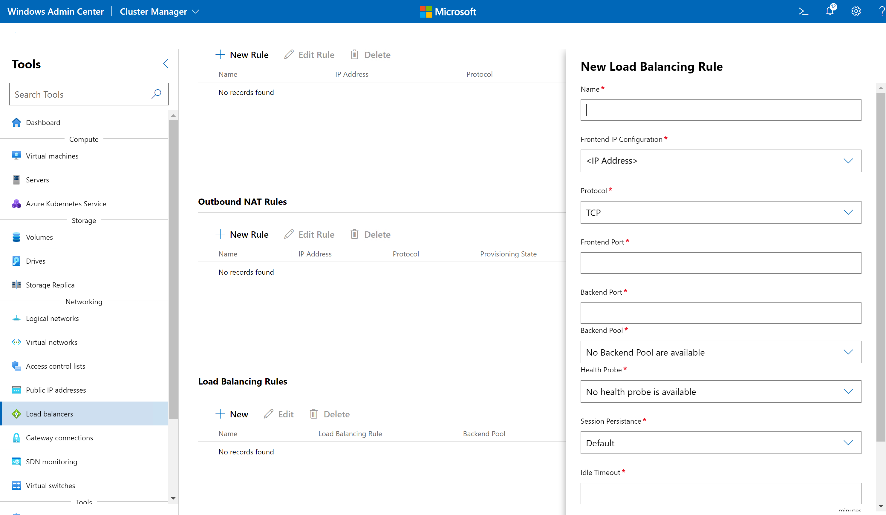 - Windows Admin Center의 도구 아래에서 아래로 스크롤하여 부하 분산 장치를 선택합니다.