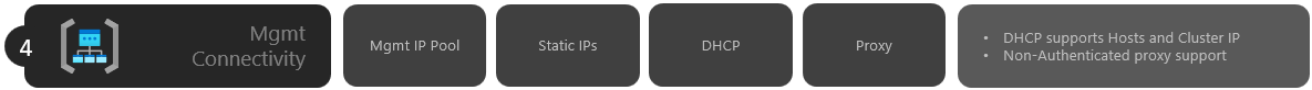 노드에 대한 IP를 DHCP 서버에서 가져오는 경우 클러스터 IP에도 동적 IP가 사용됩니다. 인프라 VM 및 서비스에는 여전히 고정 IP가 필요하며 이는 관리 IP 풀 주소 범위가 노드 및 클러스터 IP에 사용되는 DHCP 범위에서 제외되어야 임을 의미합니다.