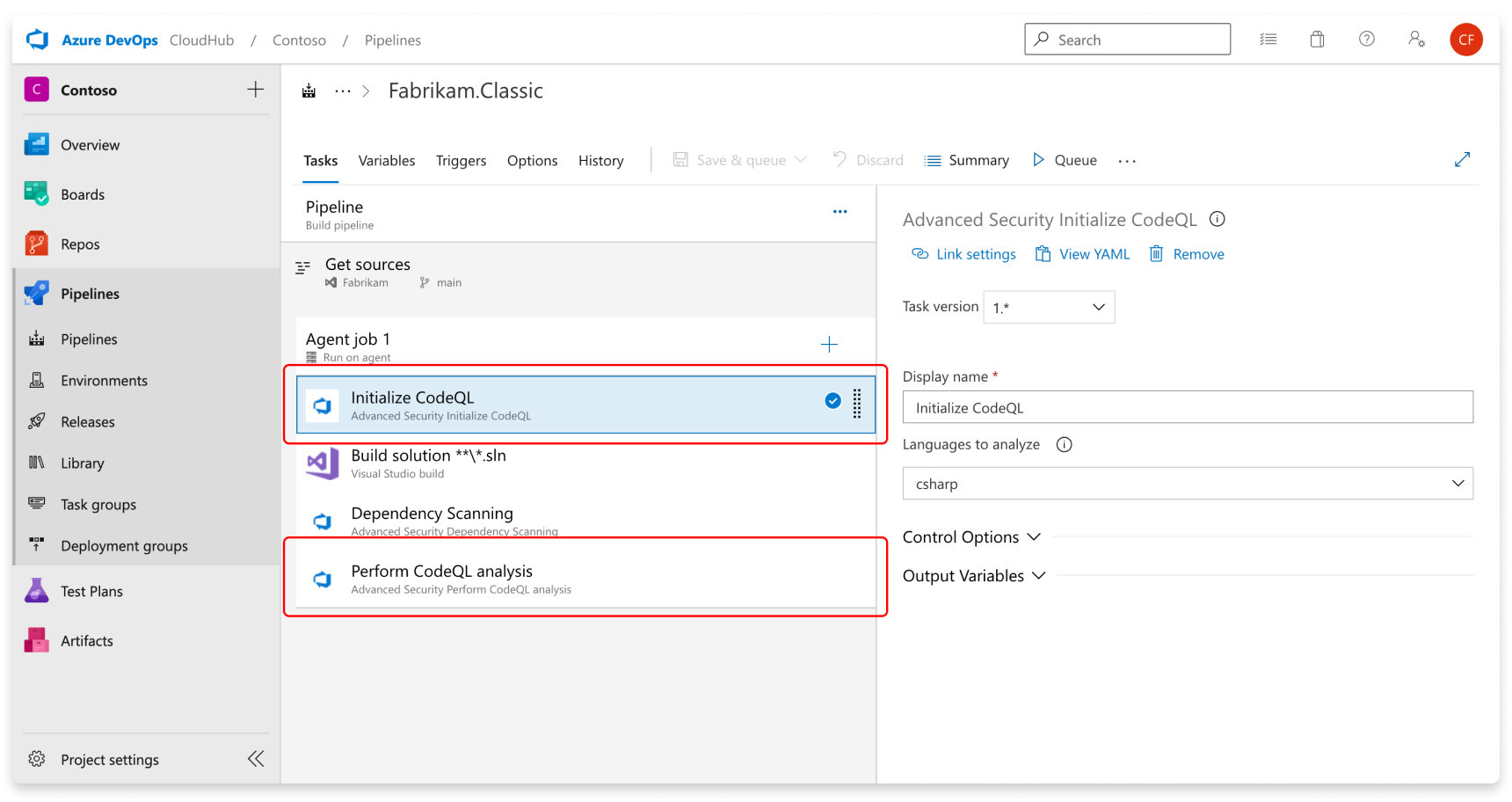 - task: AdvancedSecurity-Codeql-Analyze@1 # More details on this task: https://learn.microsoft.com/en-us/azure/devops/pipelines/tasks/reference/advanced-security-codeql-analyze-v1?view=azure-pipelines