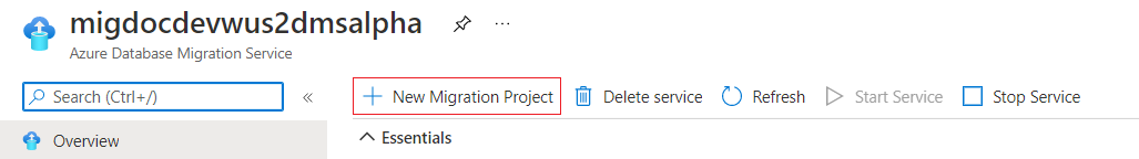 서비스가 생성된 후 Azure Portal에서 서비스를 찾아 연 다음, 새로운 마이그레이션 프로젝트를 만듭니다.