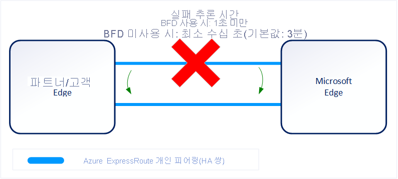 다음 다이어그램에서는 ExpressRoute 회로를 통해 BFD를 활성화할 경우의 장점을 보여줍니다.