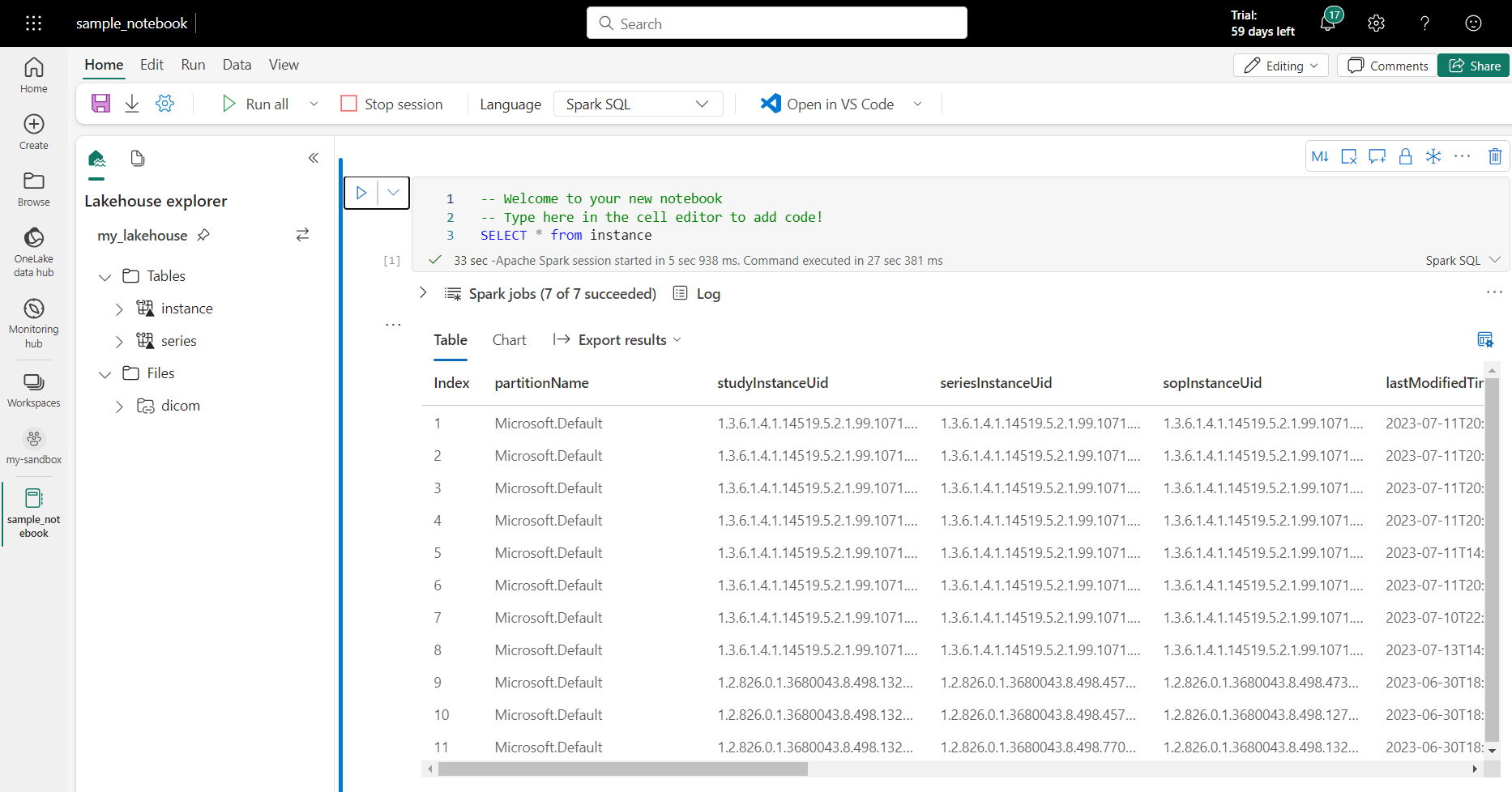 - 전자 필기장을 사용하여 레이크하우스에서 DICOM 데이터를 쿼리합니다.