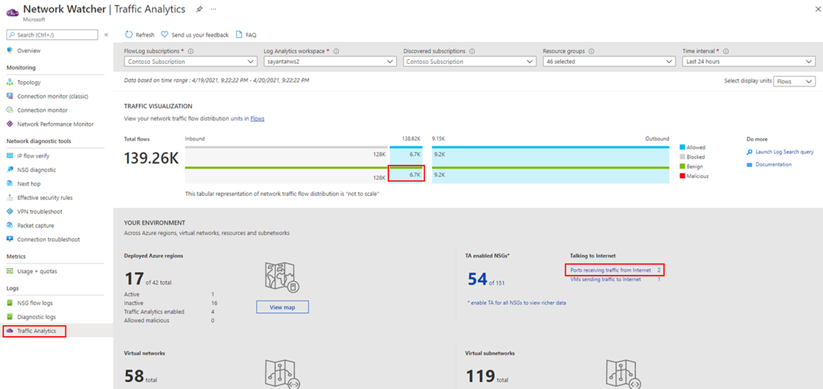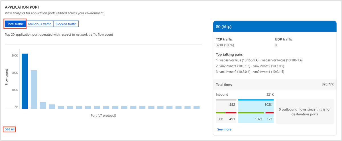 - 최대 악성 트래픽을 트래버스하고 상당한 흐름을 차단하는 대부분의 트래픽을 전송하거나 수신하는 호스트, 서브넷, 가상 네트워크 및 가상 머신 확장 집합은 무엇인가요?