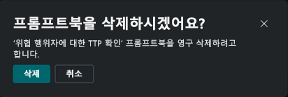 삭제를 선택하여 선택한 프롬프트 북의 영구 삭제를 확인합니다.