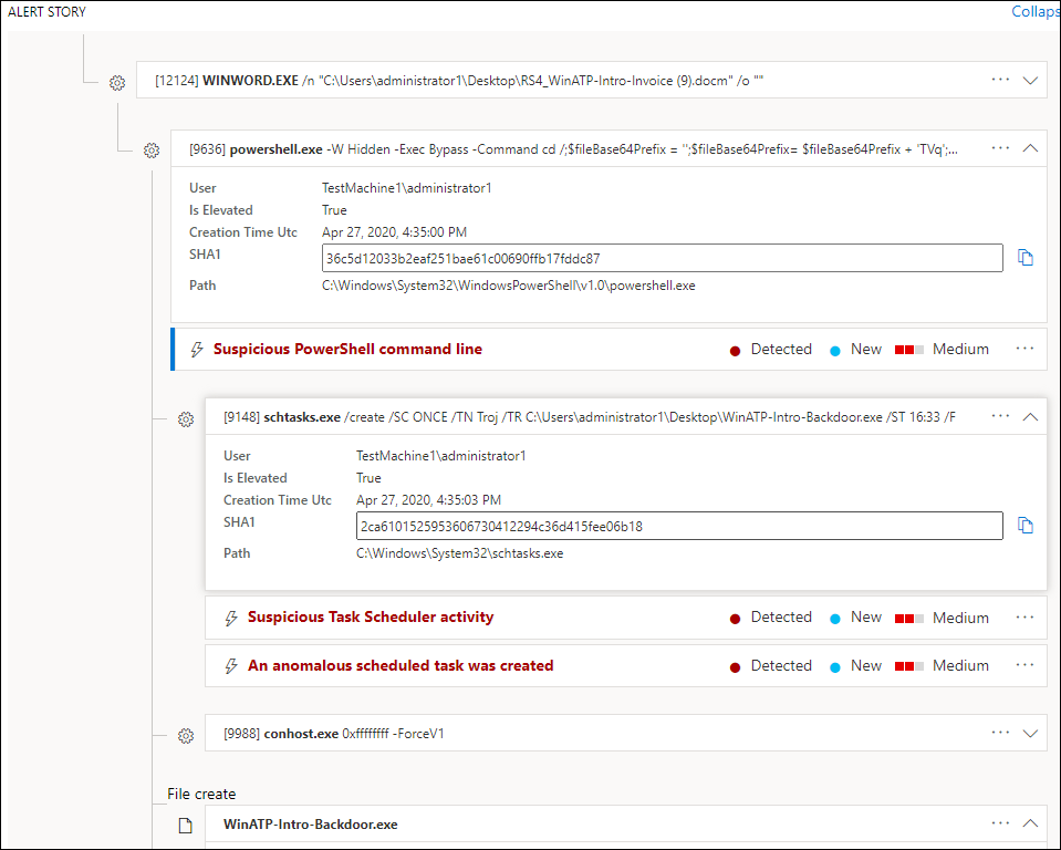 경고 스토리는 경고가 트리거된 이유, 전후에 발생한 관련 이벤트 및 기타 관련 엔터티를 자세히 설명합니다.