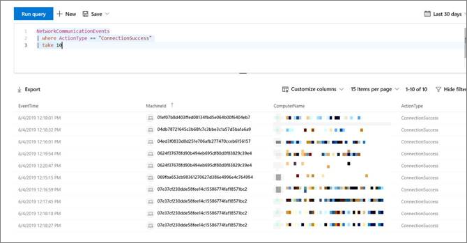 모든 새 연결 이벤트는 고급 헌팅을 통해 헌팅할 수 있습니다. 이러한 이벤트는 연결 이벤트이므로 작업 유형 아래의 DeviceNetworkEvents 테이블 아래에서 ConnecionSuccess