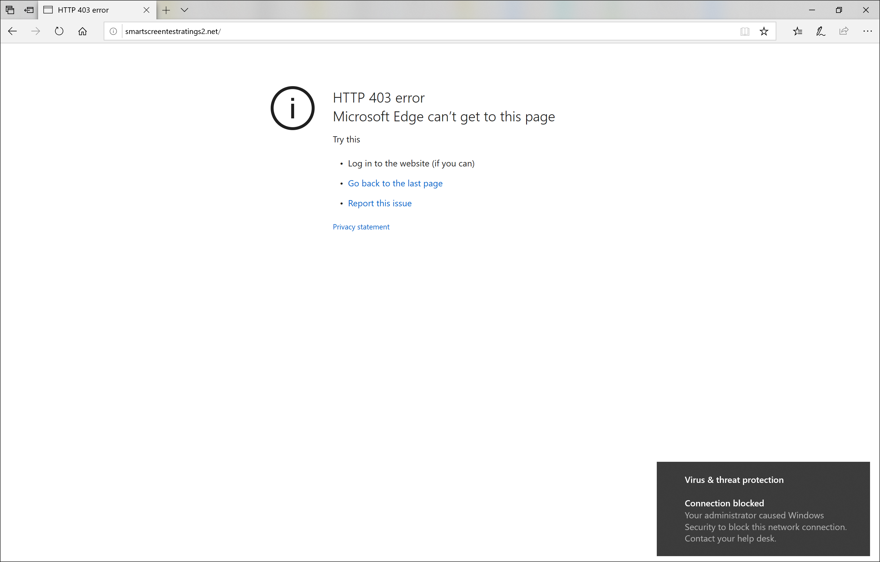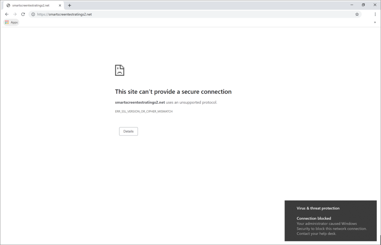 엔드포인트용 Defender의 웹 보호를 사용하면 최종 사용자가 Microsoft Edge 또는 다른 브라우저를 사용하여 악의적이거나 원치 않는 웹 사이트를 방문하지 못하게 됩니다. 차단은 웹 브라우저가 아닌 네트워크 보호 에 의해 수행되므로 웹 브라우저에서 일반 오류가 표시됩니다. 또한 Windows에서 알림을 볼 수 있습니다.