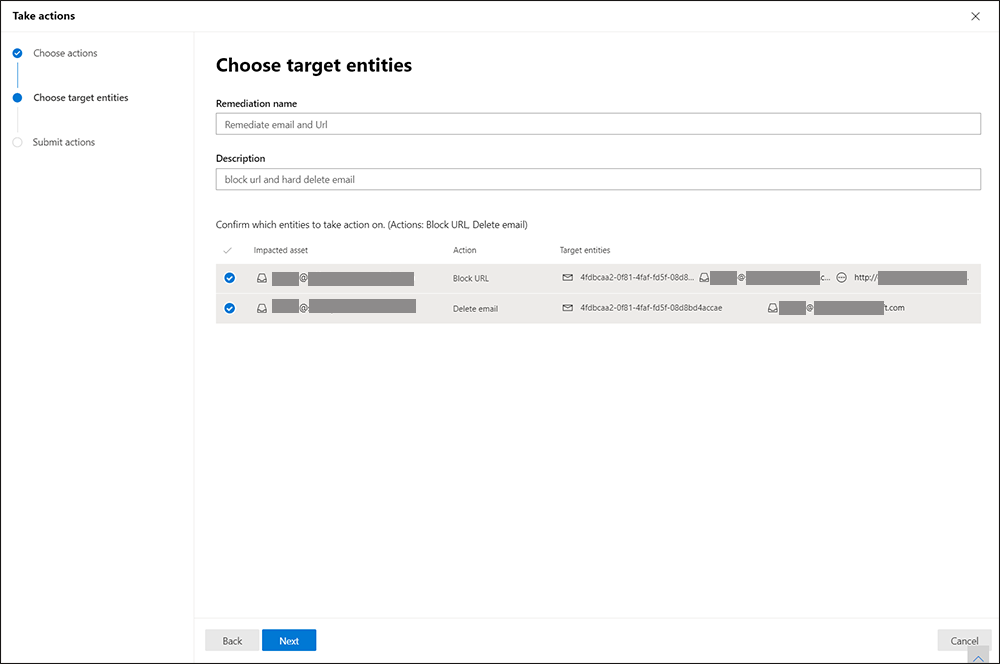 각 작업은 알림 센터기록(security.microsoft.com/action-center/history)의 알림 센터에> 개별적으로 기록됩니다. 알림 센터로 이동하여 각 작업의 상태 검사.
