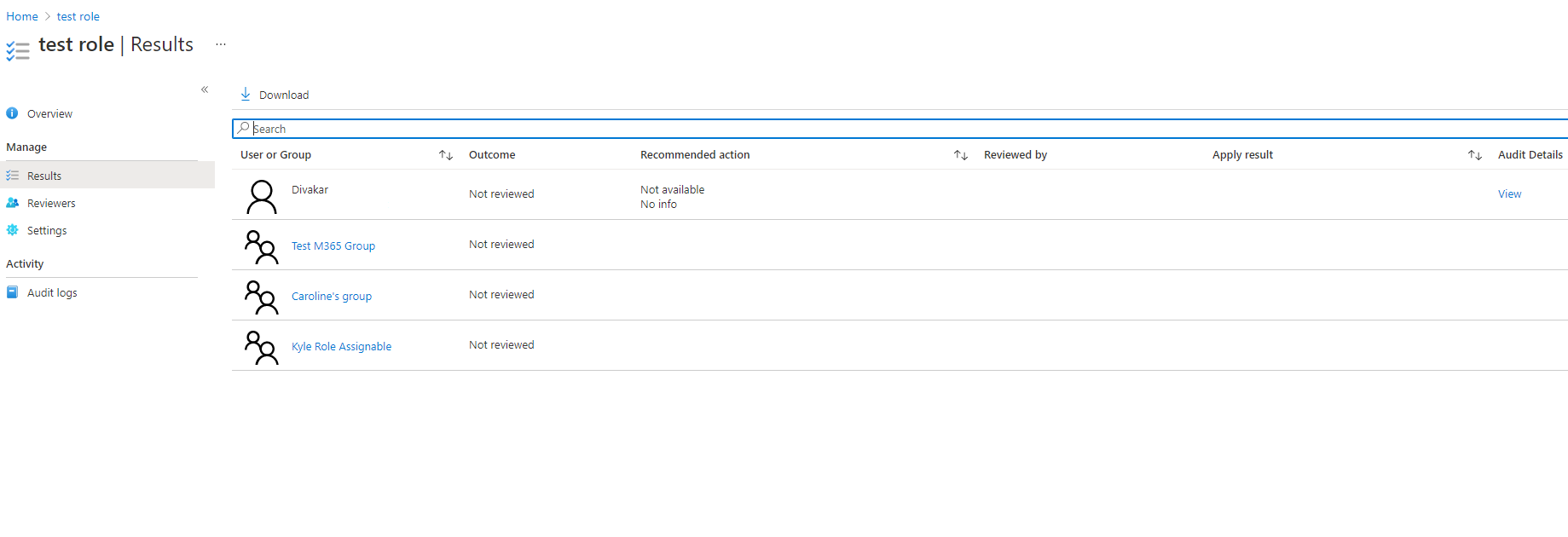 Microsoft Entra 역할에는 역할에 그룹을 할당할 수 있는 역할 할당 가능 그룹의 개념이 있습니다. 이 경우 그룹의 멤버를 확장하는 대신 검토에 그룹이 표시되고 검토자는 전체 그룹을 승인하거나 거부합니다.