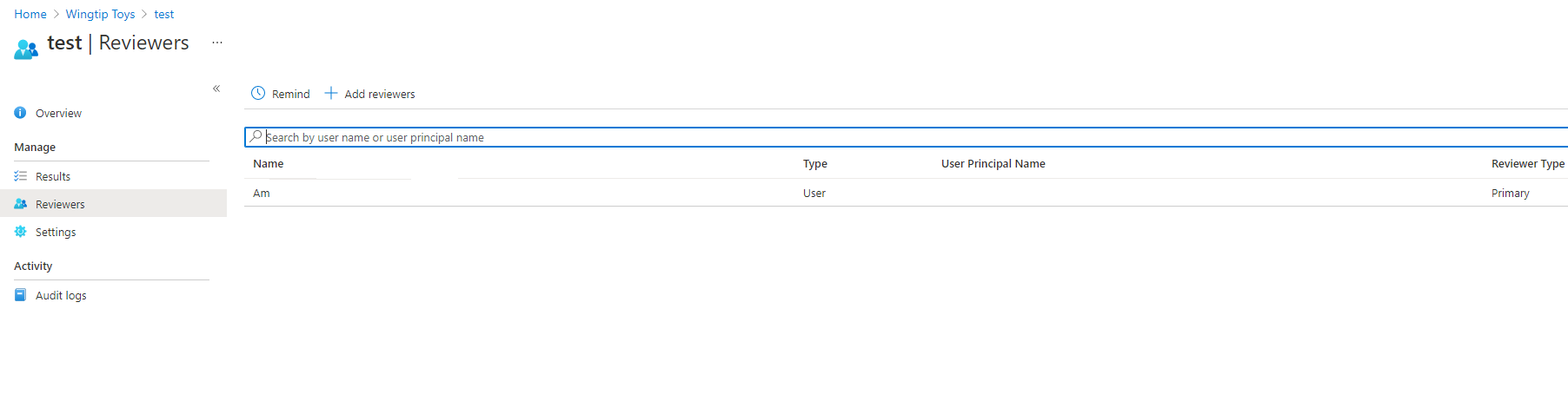 검토자 페이지에서 검토자를 보고 기존 액세스 검토에 추가할 수 있습니다. 여기에서 검토를 완료하도록 검토자에게 이리 알릴 수도 있습니다.