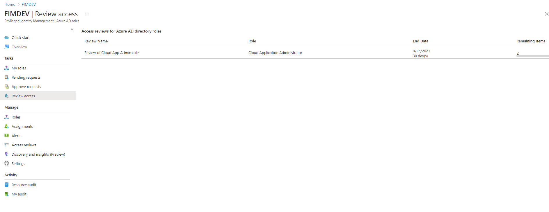 ID 거버넌스>특권 아이덴티티 관리>액세스 검토.