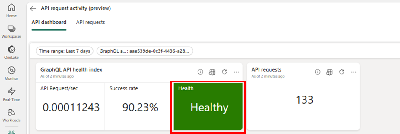 Fabric에서 GraphQL용 API를 배포한 후 클라이언트에서 API를 사용하는 방법을 이해하고 API에 문제가 있는 경우 오류를 해결할 수 있습니다. Fabric GraphQL 모니터링 대시보드를 사용하여 GraphQL API 요청 활동을 시각화, 모니터링 및 문제 해결합니다. 이 기능은 현재 미리 보기로 제공됩니다. 이 문서에서는 모니터링을 사용하도록 설정하고 대시보드의 구성 요소를 효과적으로 사용하는 방법을 설명합니다.