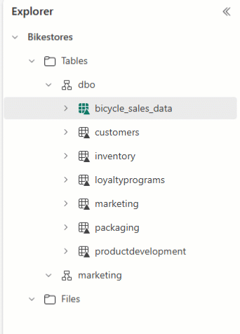 Lakehouse Explorer를 사용하여 테이블을 정렬하고 테이블 이름을 다른 스키마로 끌어서 놓을 수 있습니다.