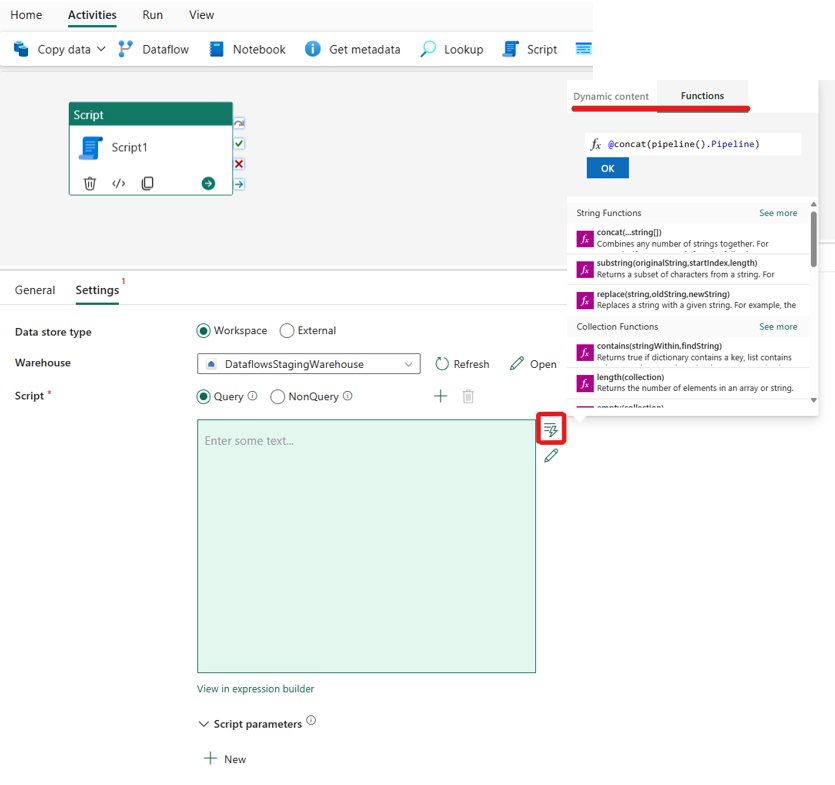 이 문서에서는 새 SQL 스크립트 작업을 추가하고, 새 연결을 추가하고, 스크립트 콘텐츠를 구성하는 방법을 알아봅니다. 스크립트 작업을 사용하여 DML(데이터 조작 언어) 및 DDL(데이터 정의 언어)을 지원하는 데이터 저장소에 대해 쿼리 및 쿼리가 아닌 SQL 스크립트를 모두 실행할 수 있습니다.