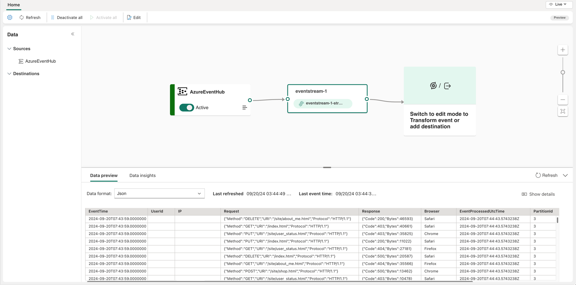 이러한 단계를 수행하면 관리되는 프라이빗 엔드포인트를 사용하여 보안 데이터 스트리밍을 보장하는 보안 프라이빗 네트워크를 통해 완전히 작동하는 Eventstream이 실행됩니다.