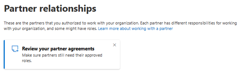 2026년 1월 5일에 MCA의 파트너 증명은 API 전용 환경이 됩니다. 즉, 간접 공급자 및 직접 청구 파트너는 더 이상 파트너 센터의 UI를 사용하여 MCA 증명을 만들거나 업데이트할 수 없습니다. 계약 데이터는 고객의 계정 페이지에서 볼 수 있습니다. 새 API에 대한 자세한 내용은 고객이 MCA를 수락한 것을 확인하세요.
