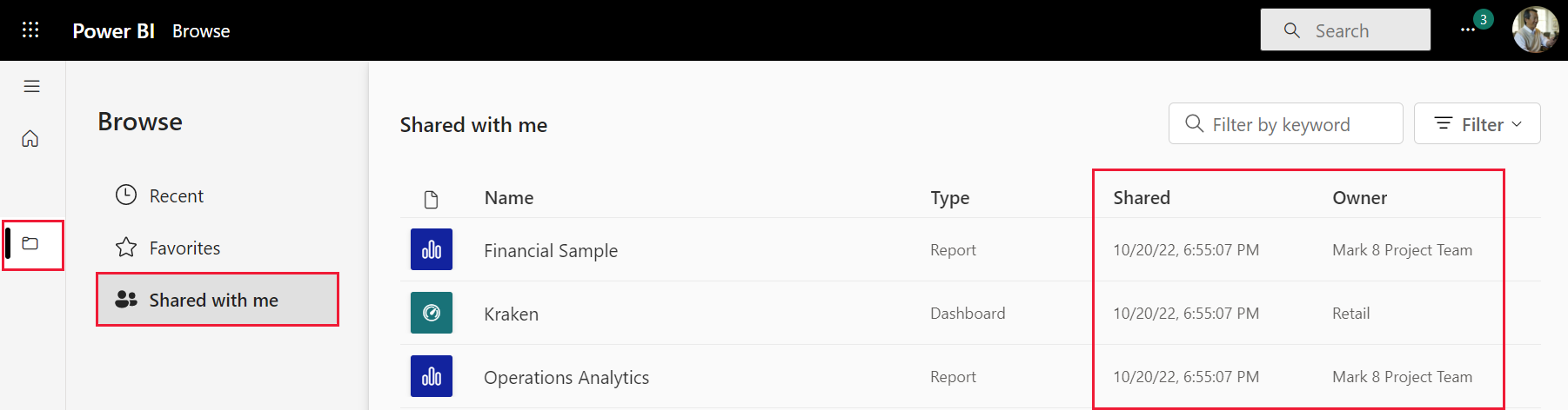 Power BI는 콘텐츠가 게시, 공유, 업데이트 및 새로 고쳐질 때 날짜 및 시간 정보를 추가합니다. 날짜 유형은 콘텐츠에 따라 달라집니다. 예를 들어 앱에는 게시된 날짜가 있고 앱 내의 콘텐츠에는 업데이트된 날짜가 있습니다. 다른 유형의 콘텐츠는 공유 날짜와 새로 고친 날짜를 표시합니다.