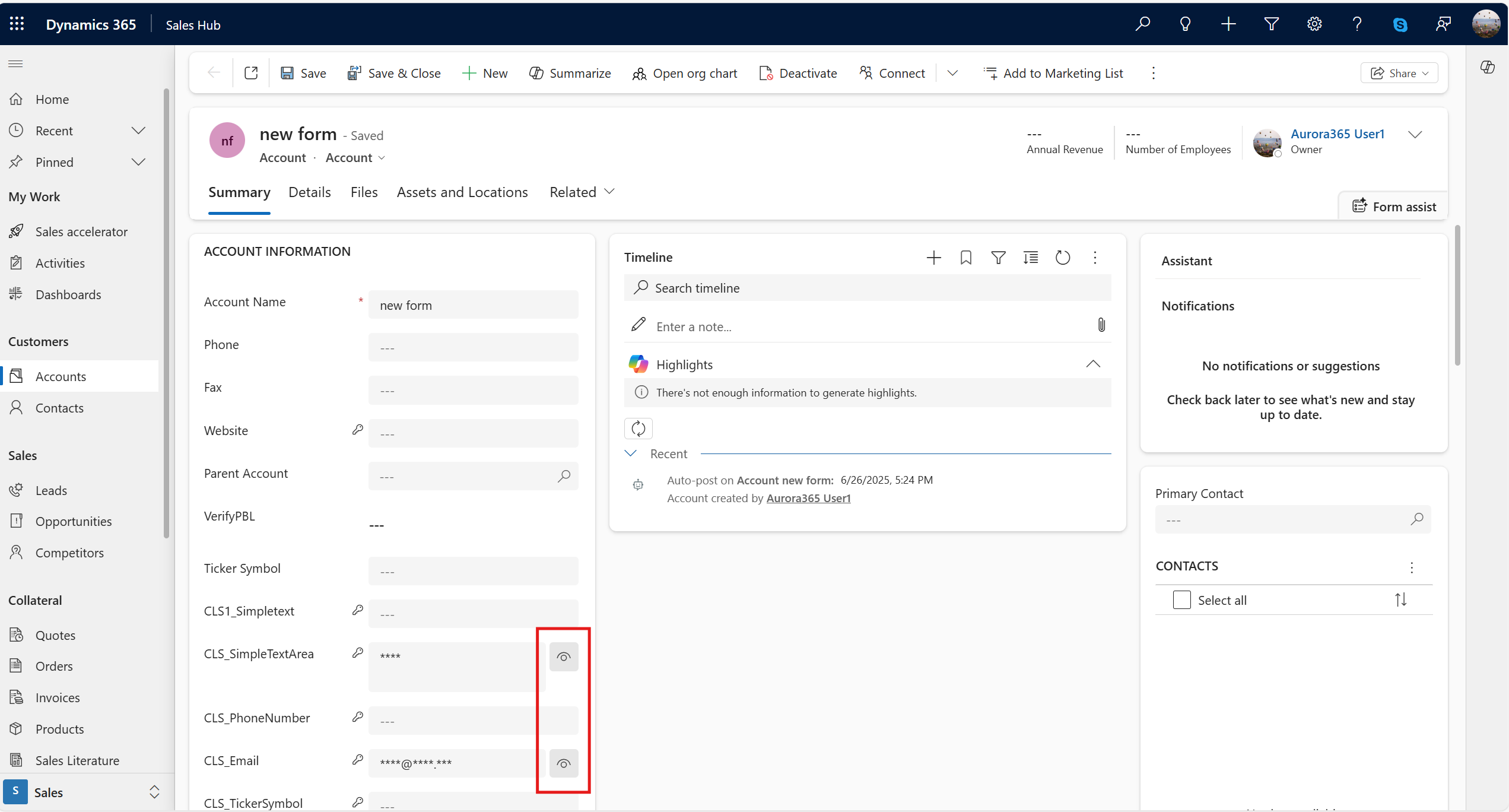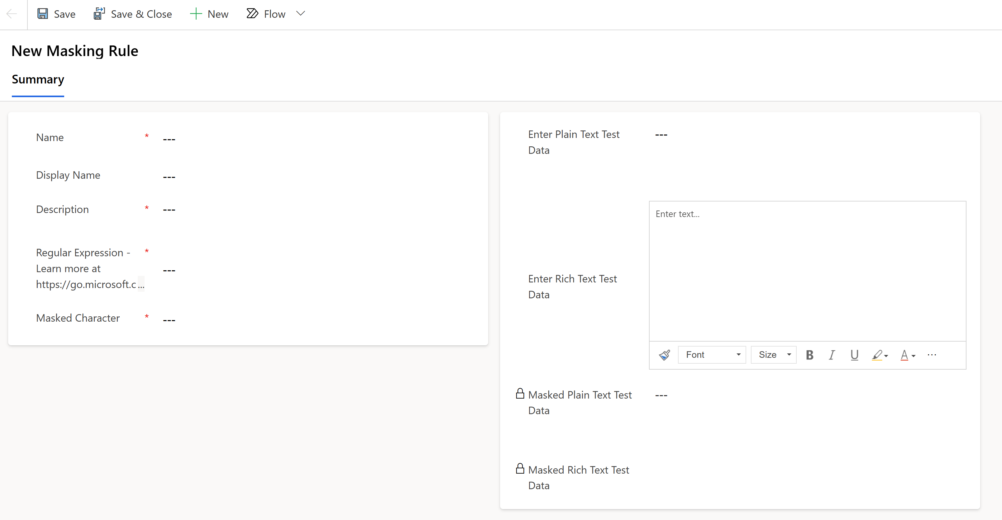 새 레코드를 만들 때 중요한 필드를 마스킹되지 않은 값으로 입력합니다. 저장하면 양식이 자동으로 새로 고쳐지고 중요한 필드가 즉시 마스킹됩니다.