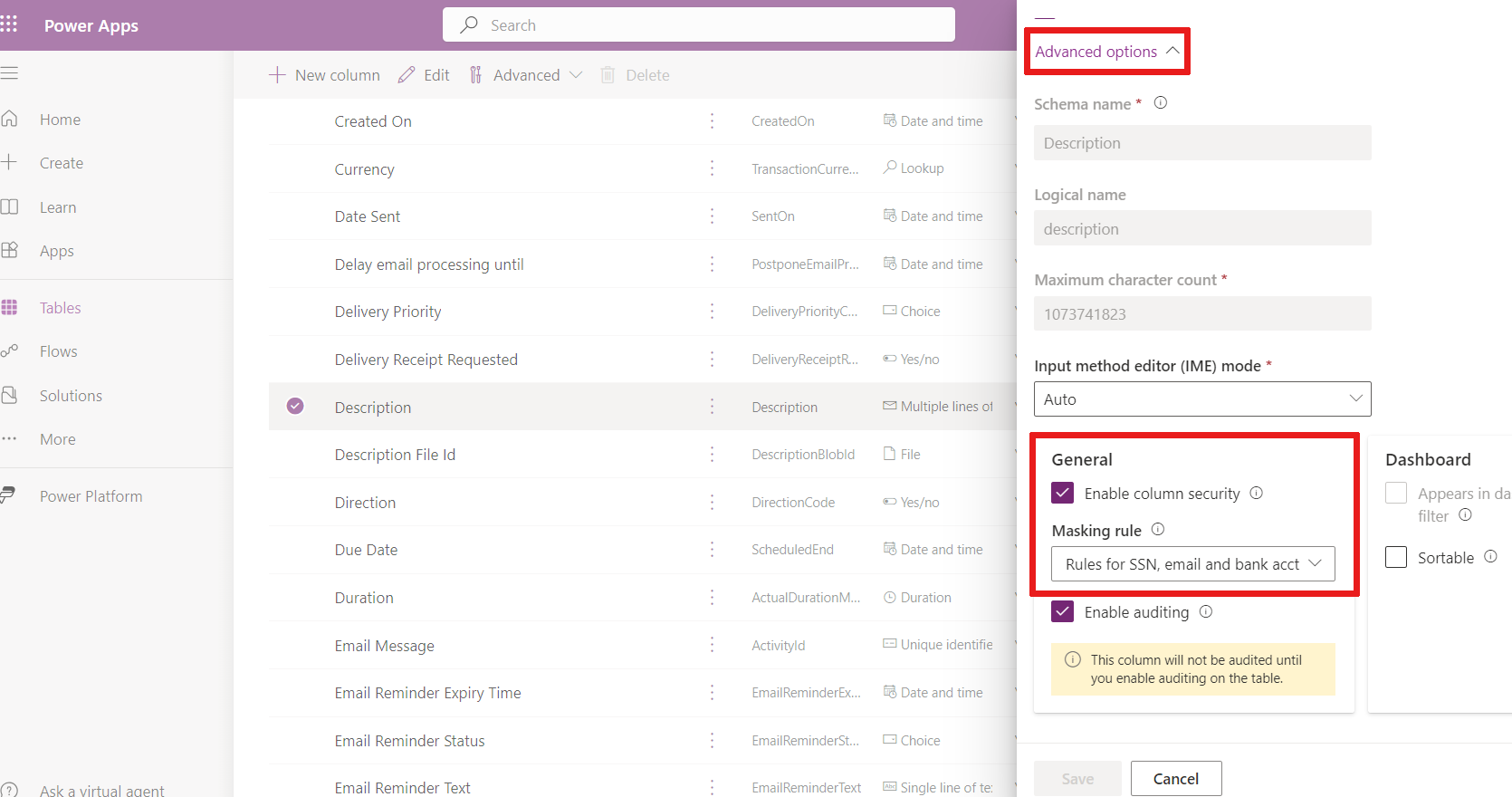 보안 열에 마스킹 규칙을 추가하려면 환경이 관리되는 환경이어야 합니다.