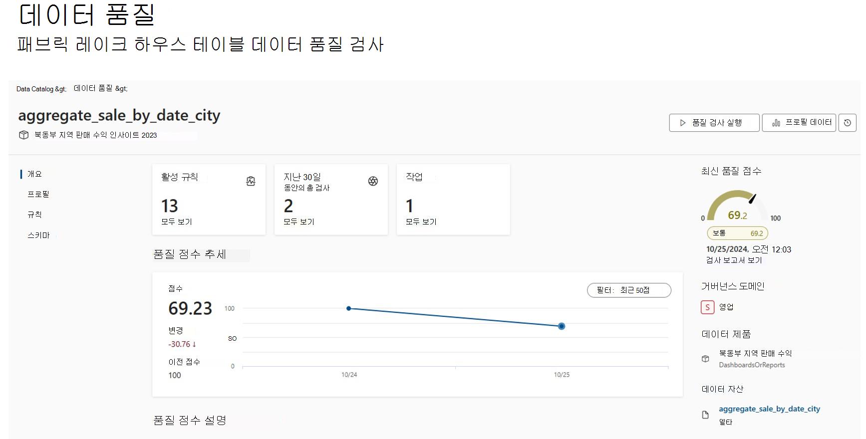 - 패브릭 Lakehouse 테이블의 데이터 품질을 측정하도록 데이터 품질 검사를 구성하고 실행합니다. 데이터 품질 검사를 구성하고 실행하는 방법을 알아봅니다.