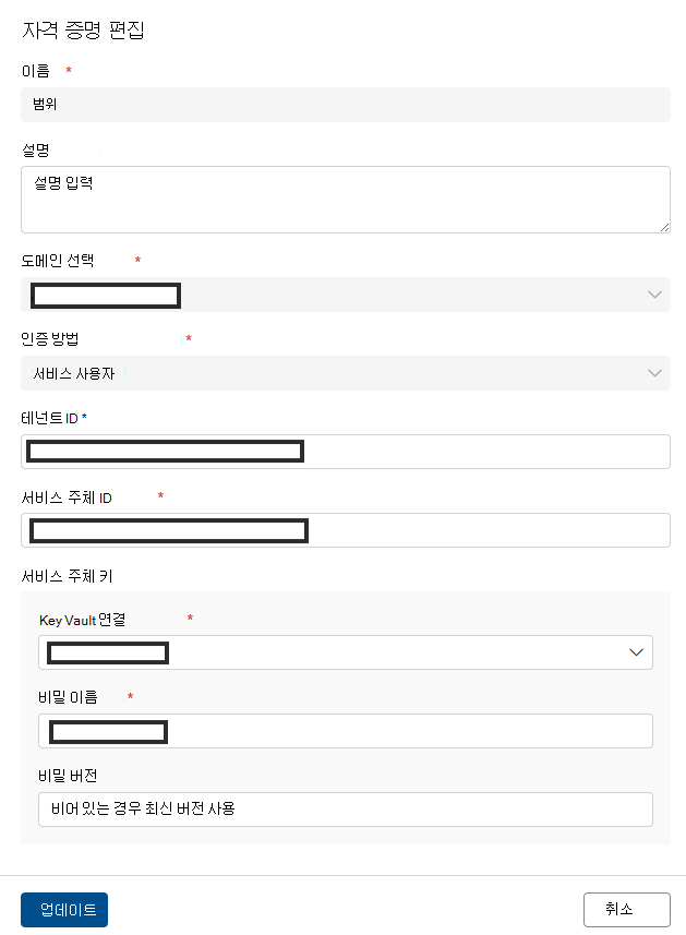 - DQ 연결은 MSI 자격 증명을 사용해야 합니다.