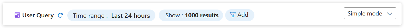 Mostrar | Configure o número de entradas que o Log Analytics recupera no modo simples. O limite padrão é 1000. Para obter mais informações sobre limites de consulta, consulte Configurar o limite de resultados da consulta. |