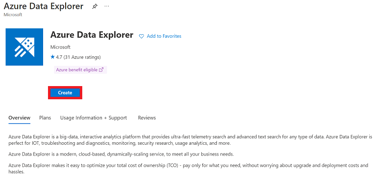 O Azure Data Explorer é um serviço de exploração de dados rápido e altamente escalonável para dados telemétricos e de log. Para usar o Azure Data Explorer, primeiro crie um cluster e, em seguida, crie um ou mais bancos de dados nesse cluster. Este artigo aborda como criar um cluster e um banco de dados gratuitos ou criar um cluster completo e um banco de dados. Para decidir qual é o ideal para você, verifique a comparação de recursos.
