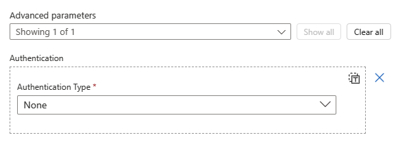 authenticationmapeia para a conexão nº 2.Essa seção descreve a autenticação usada para se comunicar com o recurso de destino e pode variar, com base no tipo de autenticação selecionado para essa conexão.