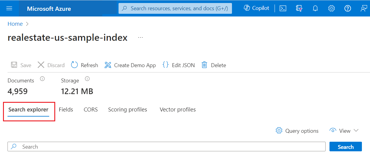 Neste início rápido, você aprenderá a usar o Search Explorer, uma ferramenta de consulta interna no portal do Azure para executar consultas em um índice do Azure AI Search. Use essa ferramenta para testar uma expressão de consulta ou filtro ou para confirmar se o conteúdo existe no índice.