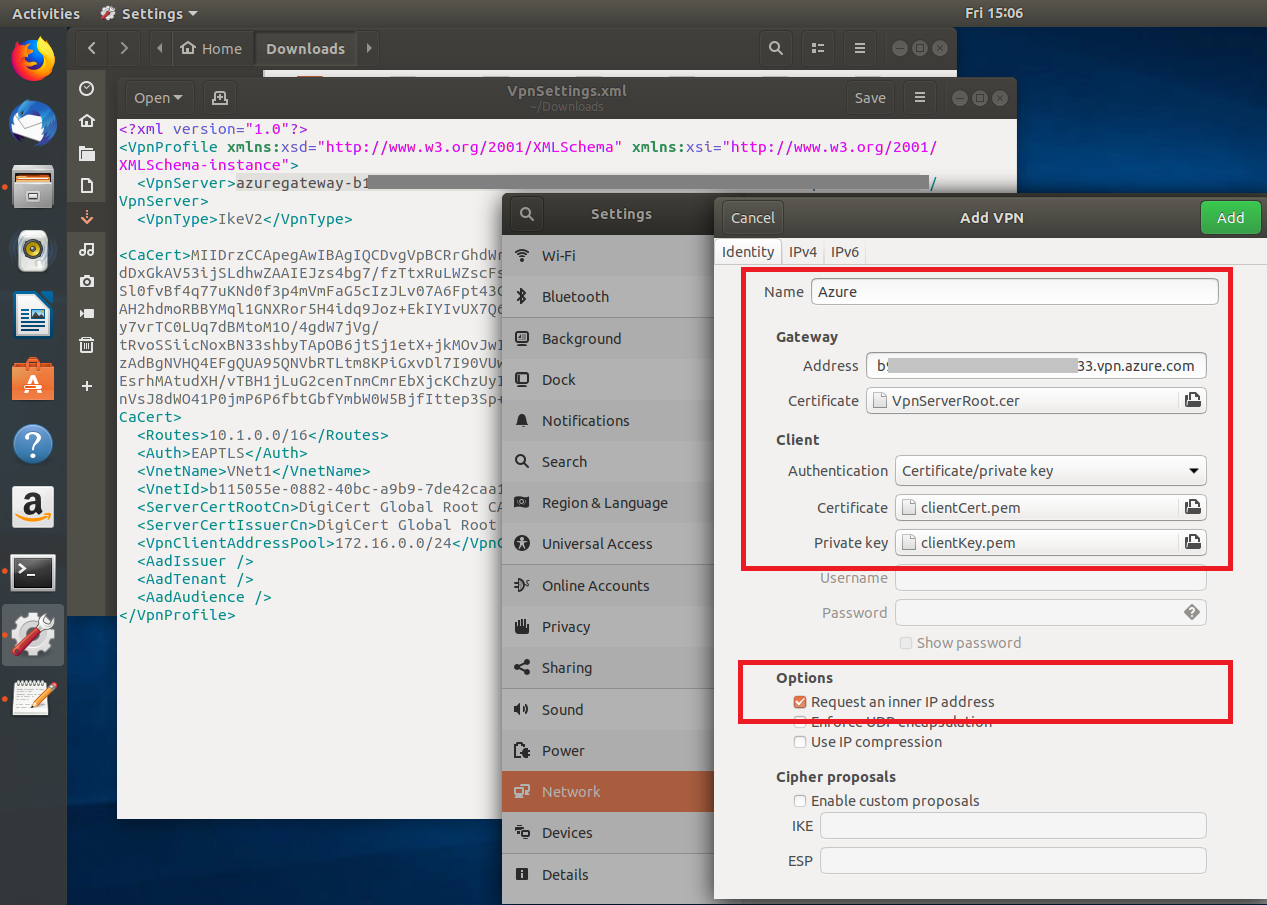 Para se conectar ao Azure usando o cliente strongSwan e a autenticação de certificado via tipo de tunnel IKEv2, cada computador cliente que estiver se conectando exigirá os seguintes itens: