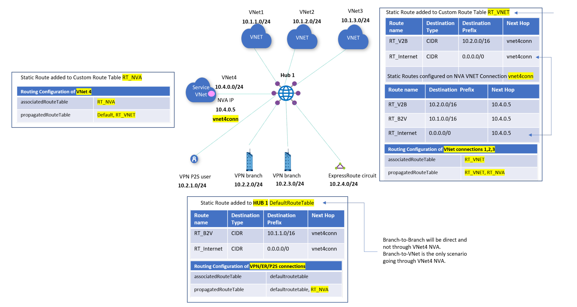 | Branches | RT_V2B | 10.2.0.0/16 –> vnet4conn |