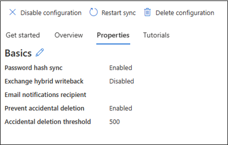 Na parte superior, selecione Propriedades. Você deve ver o write-back híbrido do Exchange desabilitado.