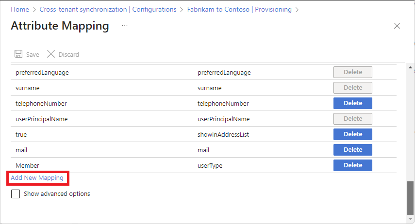 Depois de ter uma ou mais extensões de diretório, você poderá usá-las ao mapear atributos na sincronização entre locatários.