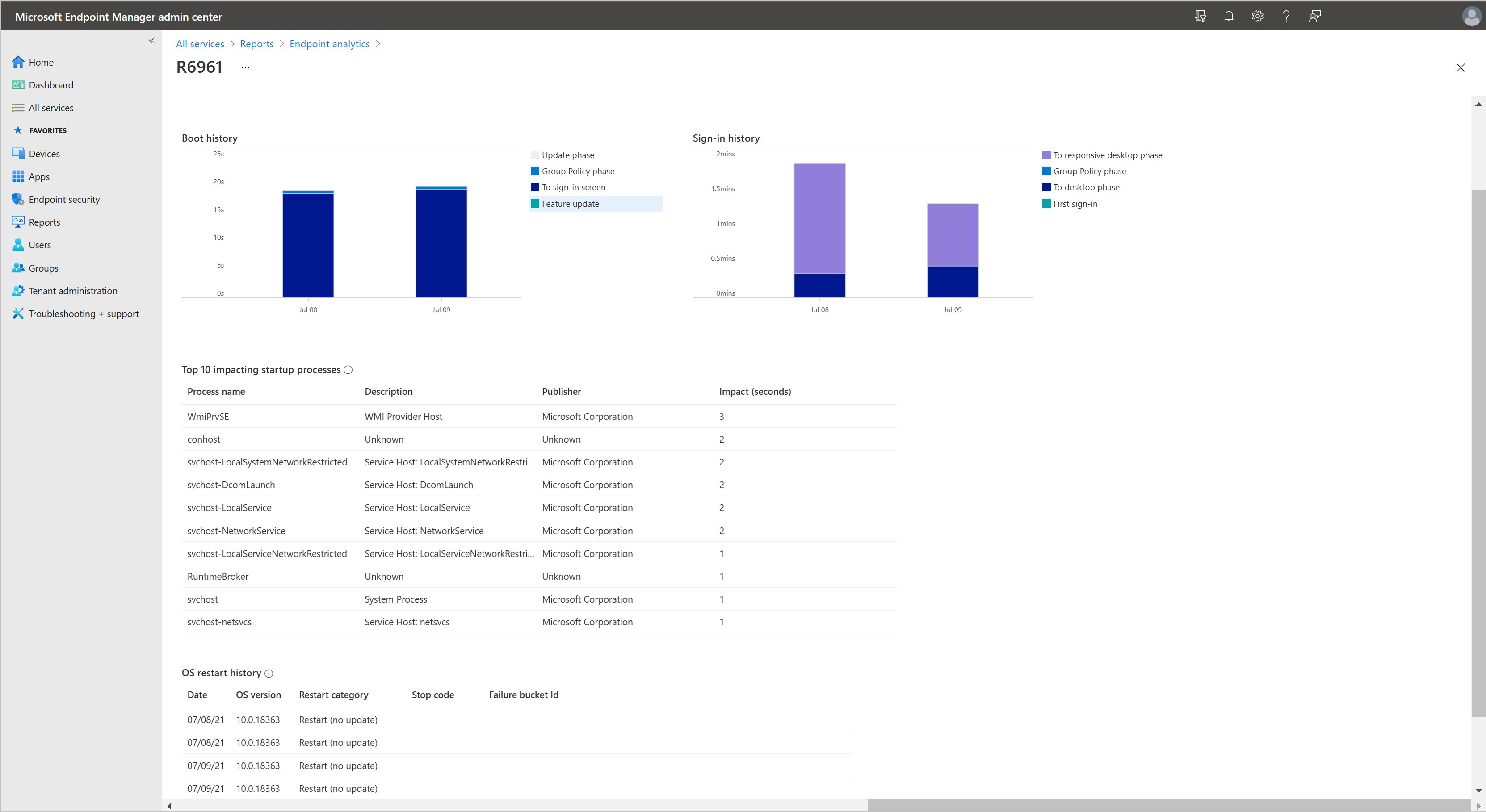 - A filtragem em Pontuação de desempenho de inicialização da Visão Geral>Pontuações do Dispositivo retorna dispositivos com uma pontuação de "--".